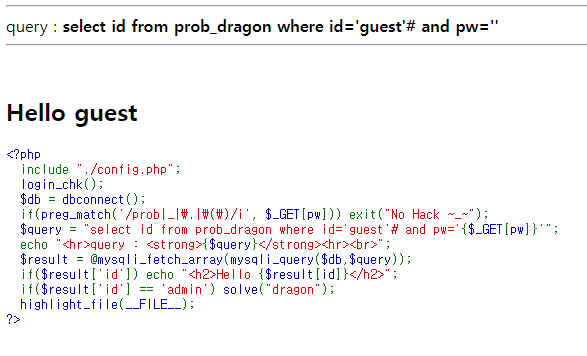 id = 'guest' 이후에 주석이 달려있는데, id가 admin이어야 통과된다.