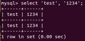 우선 mysql에서 select 'test', '1234';를 실행하면 'test', '1234' 값이 그대로 출력된다.
